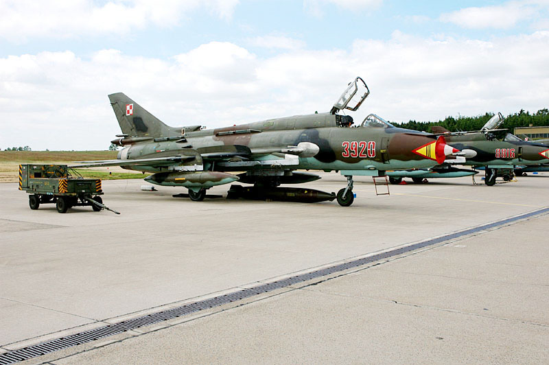 The Su-20 Fighter and Su-22 Fighter were export versions. Over Export version of the Su-17M2. The Su-22 had the Tumansky R-29B-300 engine instead of the Lyulka AL-21F. The larger diameter of the engine required changes to the aft fuselage. It resulted in a degraded performance, but in 1976 production for export began. Later models had the avionics fit of the Su-17M3 or M4 Fighter.